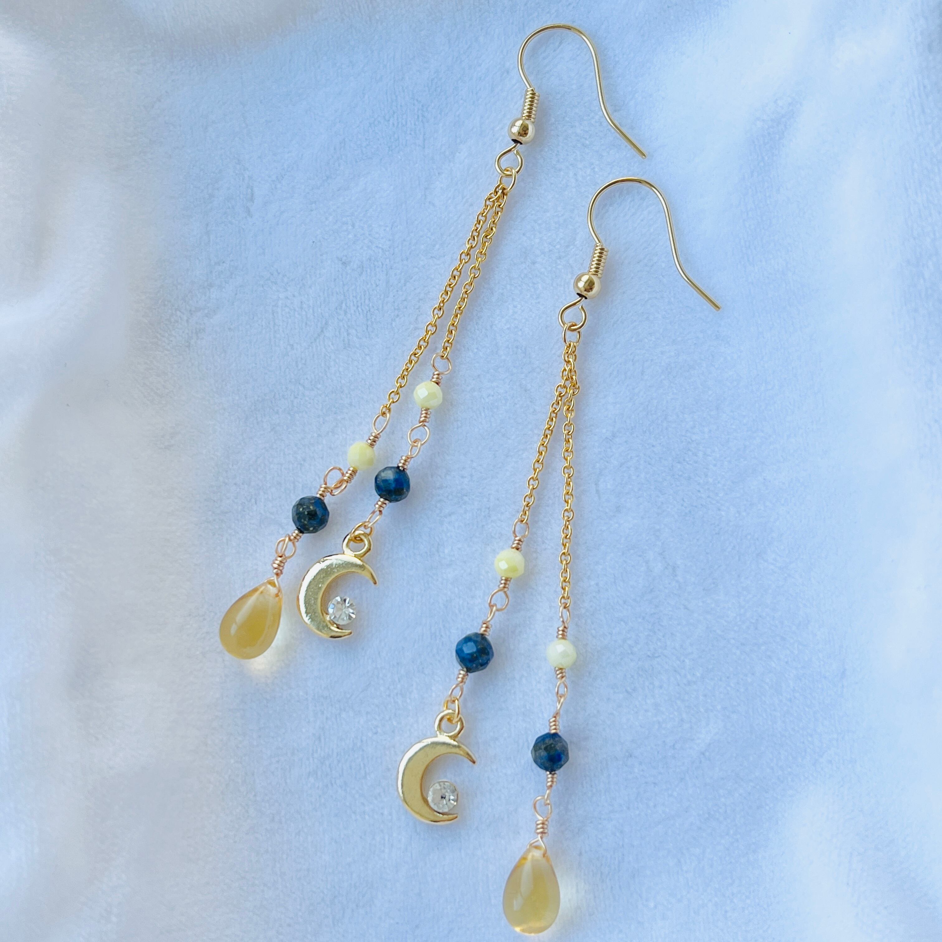 月の雫を思わせるハニーイエローのドロップ型チェコビーズを添え、
