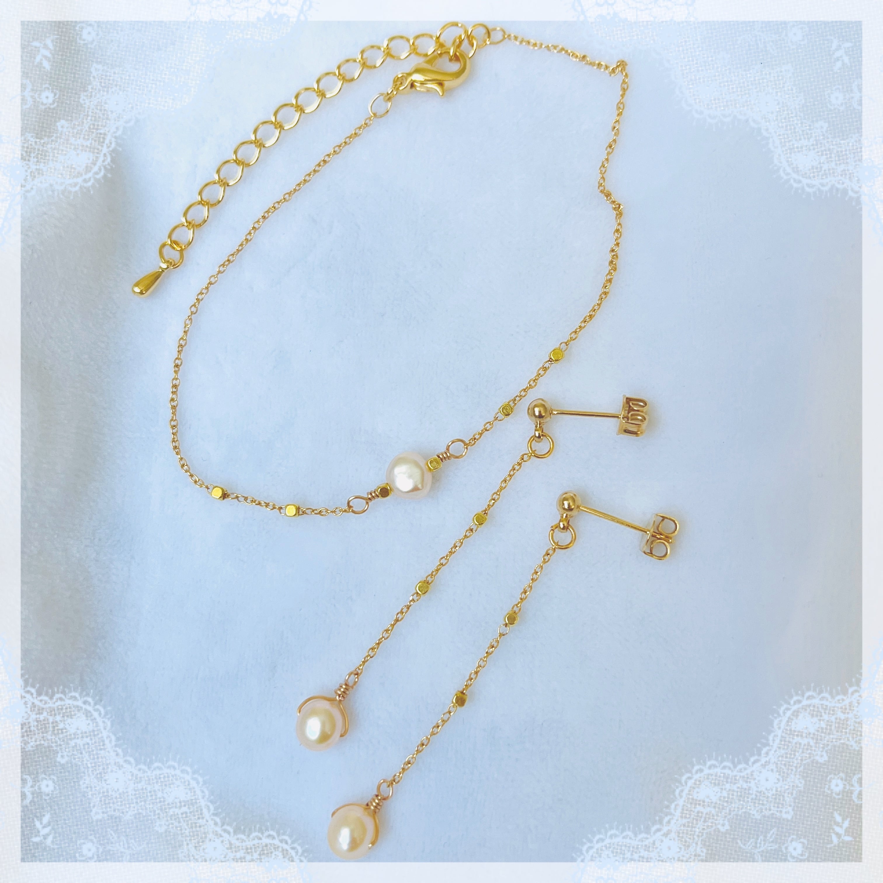 モチーフサイズ:淡水パール 約5mm/メタルキューブビーズ 約2mm
