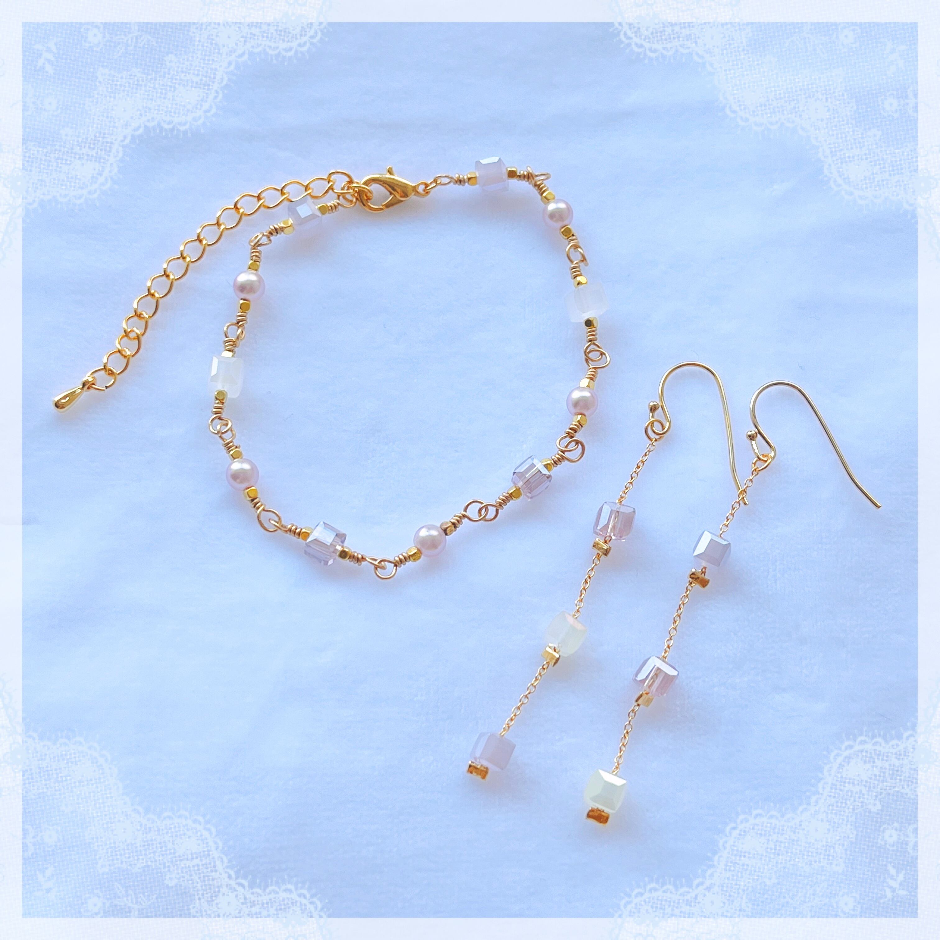 モチーフサイズ:スクエアガラスビーズ 約4mm/パールビーズ 約4mm