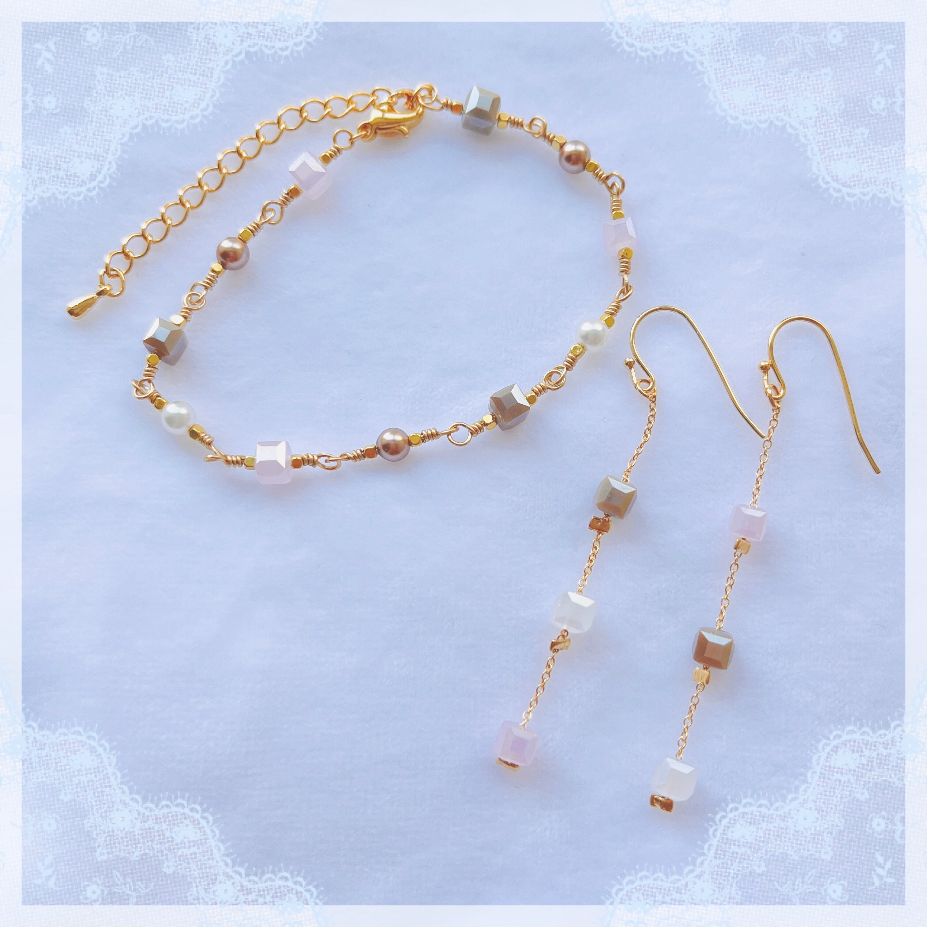 モチーフサイズ:スクエアガラスビーズ 約4mm/パールビーズ 約4mm